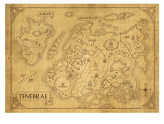 Monde de ténèbres, monde de terreur et de douleur, monde d’amour et de vie. Terre maudite et merveilleuse à la fois. La nuit, Lune majestueuse illumine son ciel, et sur tous les êtres vivants pose sa bénédiction. Le jour, Lune disparaît pour laisser place à l’obscurité la plus profonde. Le soleil de Tenebrae est trop faible et trop éloigné pour en éclairer la surface. Alors, des créatures et forces maléfiques envahissent les ténèbres.