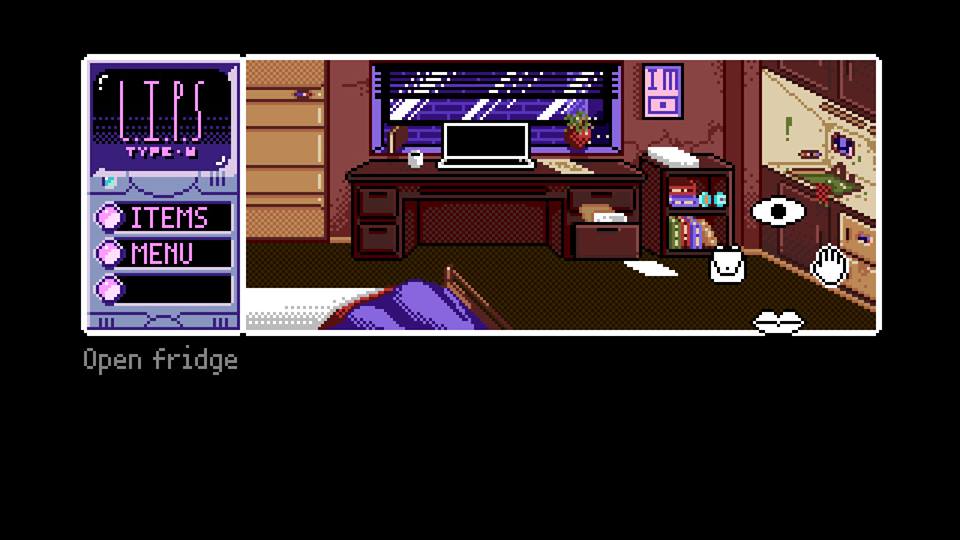 C’est ici que rentre la notion complexe de genre de jeu, cette partie reflète l’avis du rédacteur. Pour faire simple, celui-ci voit les Visual Novel comme fortement inspirés des Point’n’click, mais plus concentrés sur les dialogues. Ces premiers ne possède ainsi pas un monde ouvert et des énigmes aussi importantes que les seconds. 2064: Read Only Memories se joue via des écrans fixes. Vous devez parcourir les objets et les personnes les uns après les autres, puis sélectionner une interaction. Ces interactions sont présentées dans une roue d’actions, l’oeil (pour observer), la main (pour toucher, prendre), la bouche (pour manger, parler) et le sac à dos (pour utiliser un objet de l’inventaire). Mais, malgré ses apparences de Point’n’click, ce premier titre de MidBoss est plus proche d’un Visual Novel. Ici, vous ne ferez principalement que suivre les indices. Pas d’énigmes à la LucasArts, mais plutôt une construction poussée de l’histoire, de son univers et de ses personnages afin que ceux-ci soient crédibles et réalistes.Une direction artistique léchée