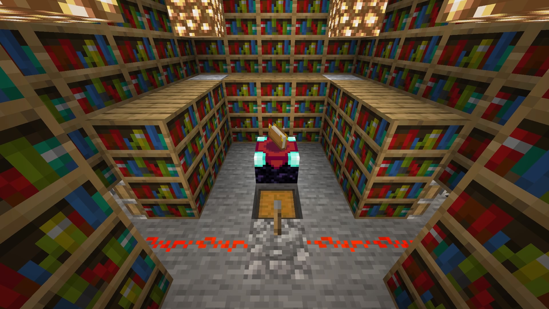 Après l’enclos des vaches est arrivé celui des moutons, puis des poules et enfin des cochons. Le soir, quand elle se couchait, j’ai continué d’améliorer la maison, plus spacieuse et avec des pièces thématiques. Je me suis amusé à créer tout une salle pour l’enchantement, un endroit spécifique pour le craft, et, ma petite surprise, un lit pour elle (on ne dirait pas comme ça mais c’est un vrai cadeau à ses yeux).