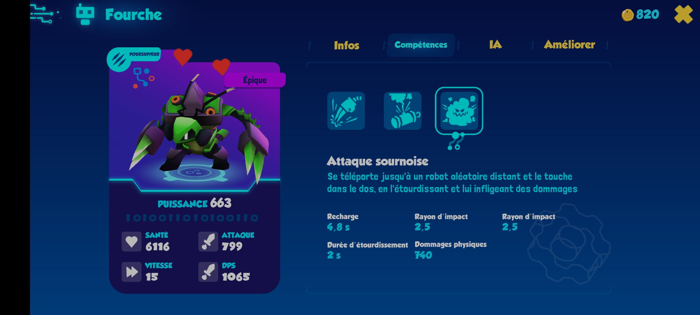 Ma stratégie, donc, cible principalement les robots sauvages. Elle a pour cœur le Chaîneur, dont la capacité ultime permet d'agripper tous les ennemis à portée et de les attirer à lui. Une fois cela fait, Mort et Bigshot s'occupe de leur faire des dégâts... Mais le choix de ces robots n'est pas anodin.