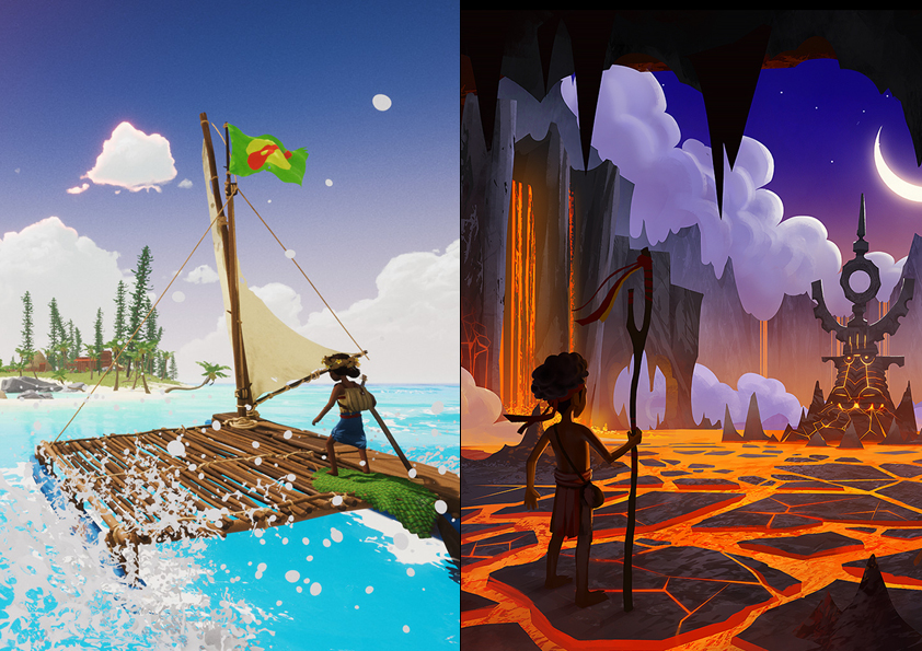 Après avoir dressé il y a quelques jours l'état des lieux sur le développement de l'esport en Outre-mer, nous poursuivons notre série d'articles sur les DROM-COM avec deux jeux calédoniens. Explorant ses reliefs boisés, son paysage océanique et parfois même ses précieux fonds marins, deux créations vidéoludiques ont pour projet de faire le tour de la Nouvelle-Calédonie, pour y faire admirer sa géographie et son histoire. Tchia et Waika, chacun enfant de l'île, sont deux personnages qui revisitent les mythes et la culture kanak qui habitent l'archipel. Tchia est un projet du studio Awaceb de Bordeaux et Waika vient du studio éponyme implanté sur l'île. Premiers jeux vidéo à s'intéresser aux coutumes calédoniennes, ils sont pionniers dans une représentation ludique du passé mythologique et historique kanak.