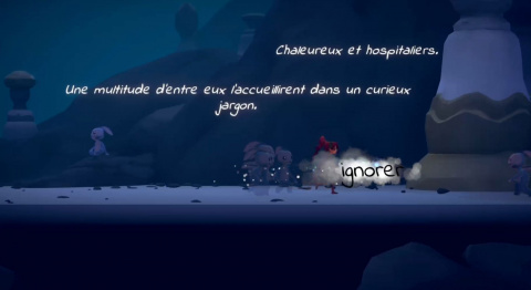Vous ne trouverez pas dans Lost Words d'enjeux à relever. Votre seul objectif sera d'avancer dans l'histoire en même temps que vous cheminez dans la réflexion et les épreuves morales. Les casses têtes ne sont pas difficiles, à moins de rater un saut, vous ne pourrez pas mourir, et le boss de fin passera plus de temps à vous parler qu'à vous combattre.