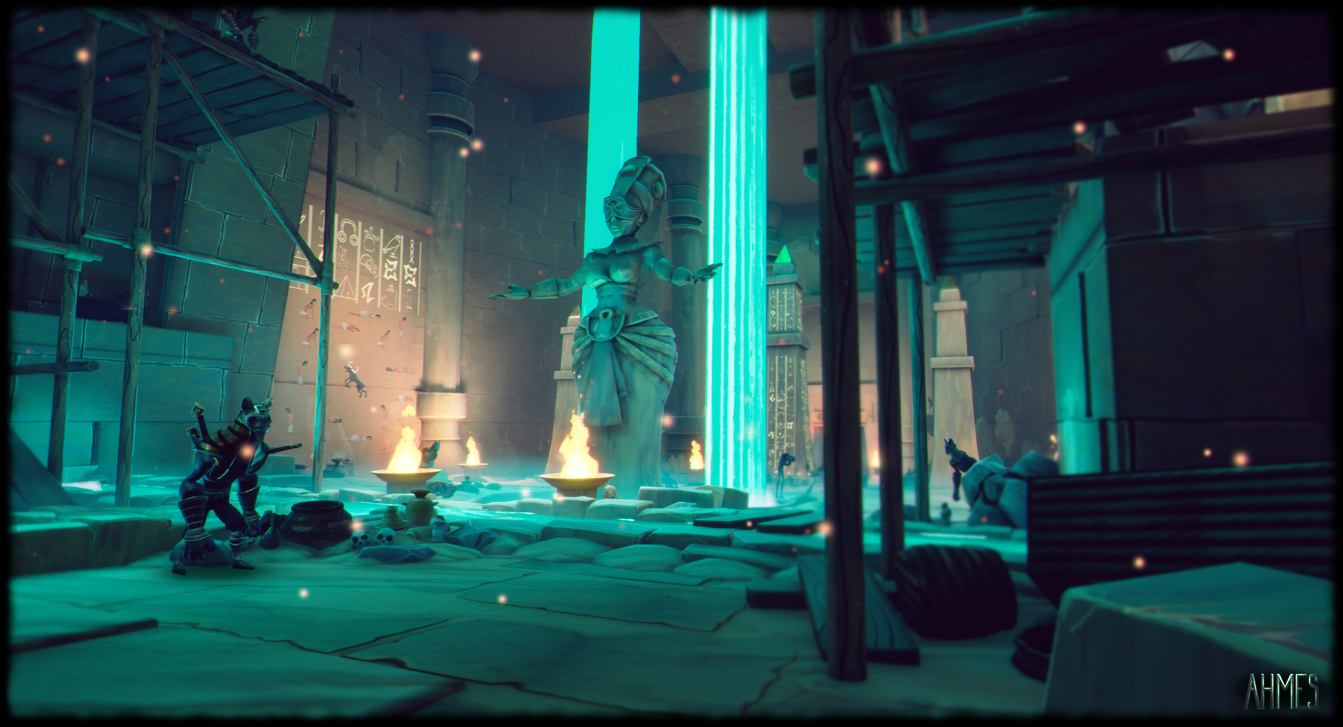 AHMES a été réalisé par vingt étudiants dans le cadre de leur projet de fin d’étude. Encadrés par l’équipe pédagogique, ces étudiants ont développé le jeu à la manière d’un vrai studio. Chaque membre de l’équipe s’est attribué un rôle dans le développement allant de Cheffe de projet à Level Designer en passant par Artiste FX, Animateur 3D ou encore Sound Designer.