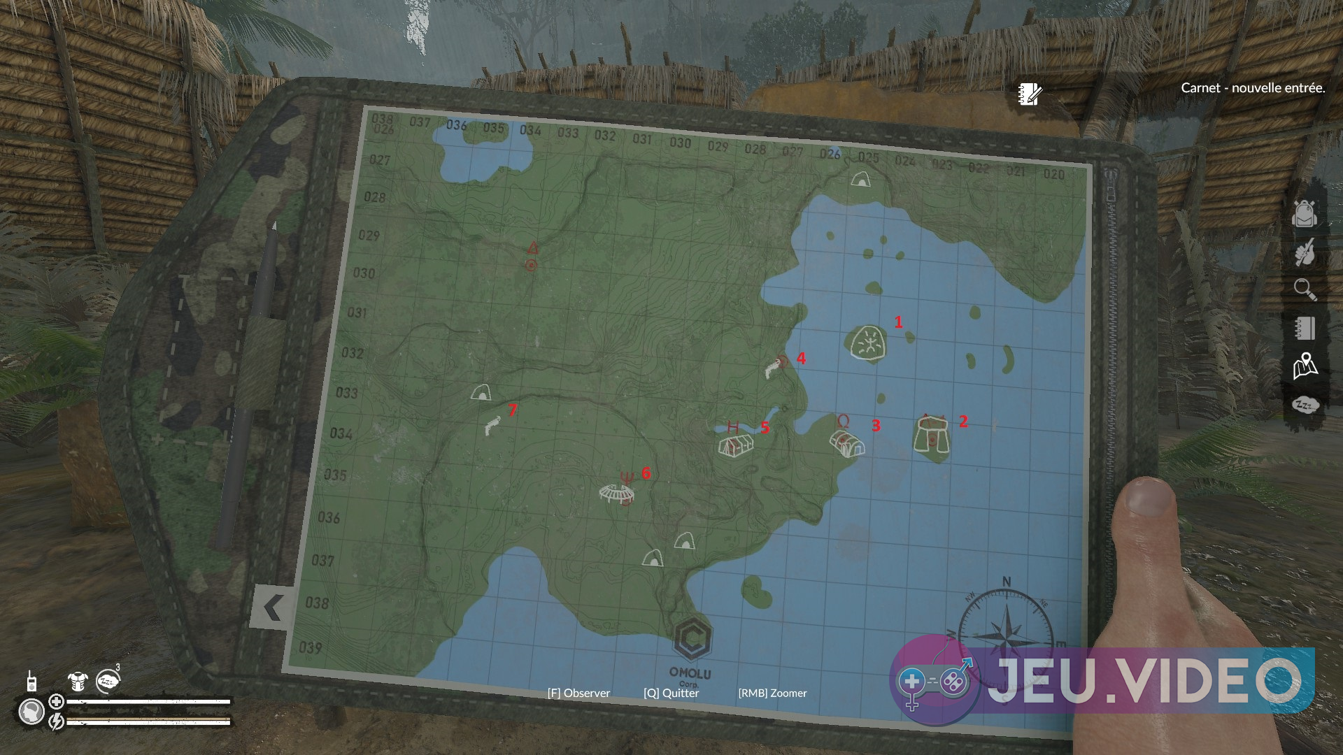 Le camp Omega est un endroit très important car il permettrait d'accéder à la bonne fin de Green Hell. Ici, vous trouverez deux tentes, une première ouverte, où vous trouverez la troisième carte posée sur une table, des lits, des journaux audio, des notes et une bonne quantité de nourriture.