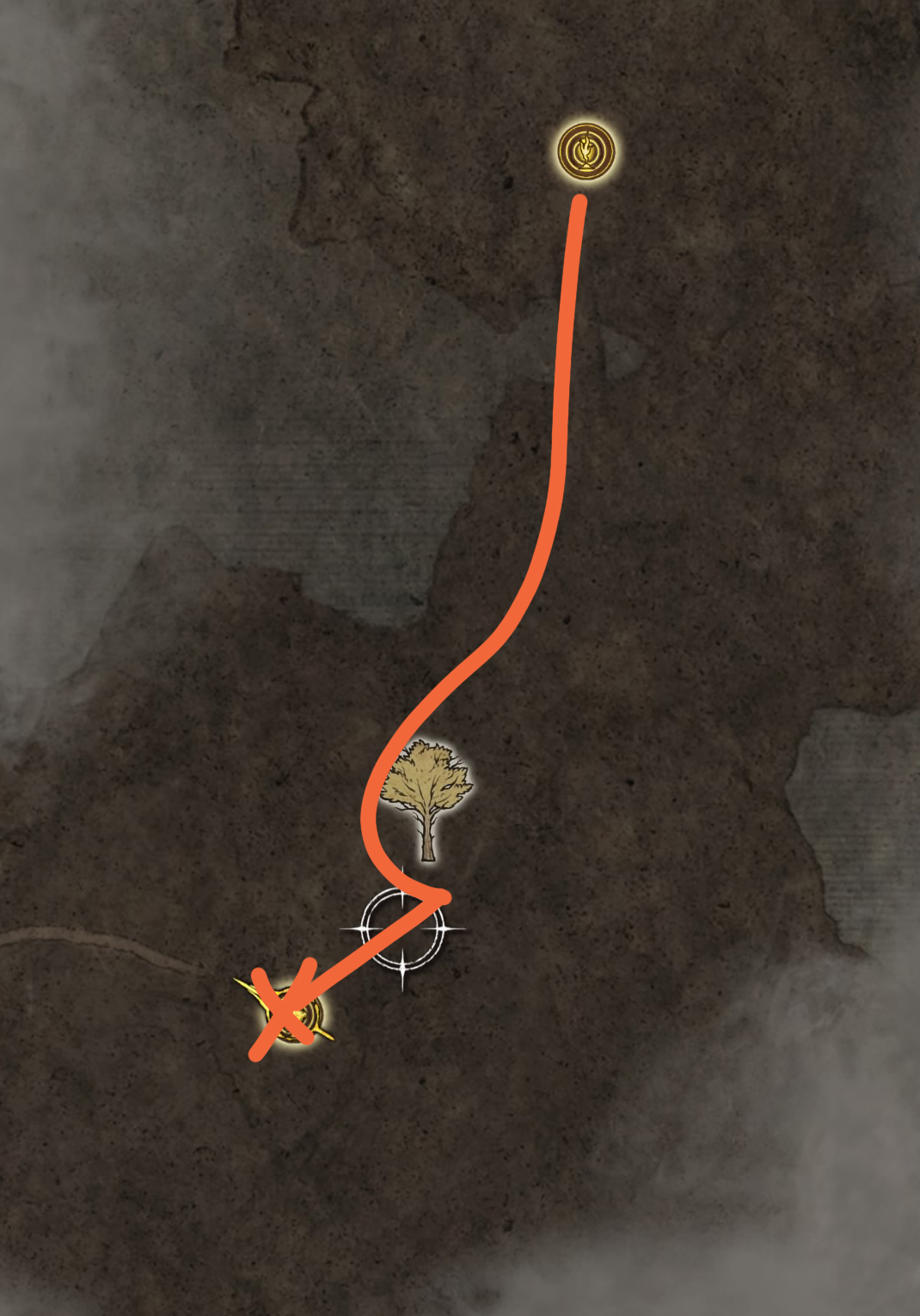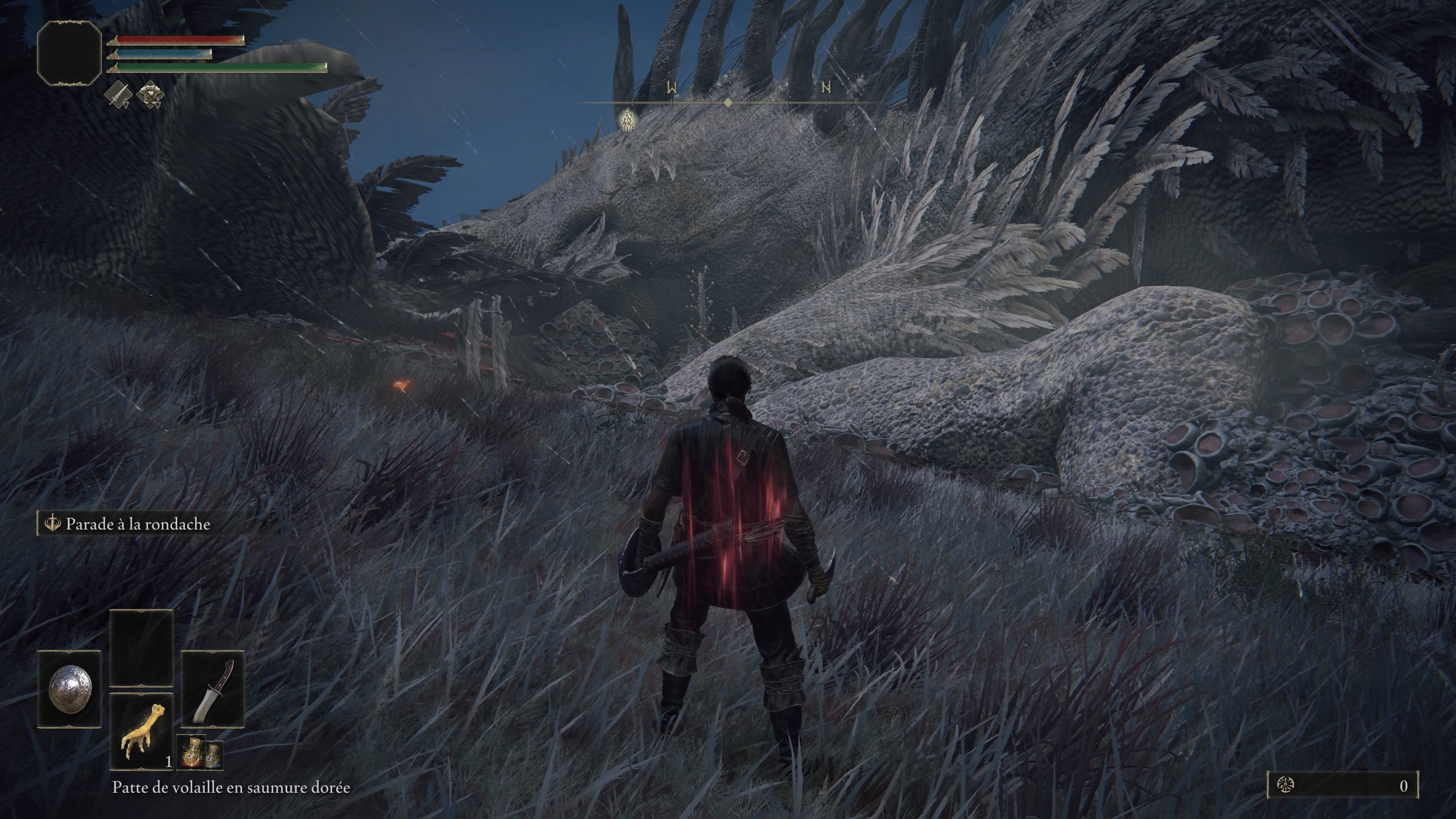 En premier lieu, allez chercher une patte de volailles en saumure dorée à l'endroit indiqué sur la carte ci-dessous. Évitez les ennemis autant que possible, une fois l'objet récupéré, retournez au site de grâce. Cet objet vous permettra de gagner plus de runes sur les ennemis vaincus sur une courte période, très utile dans ce guide.