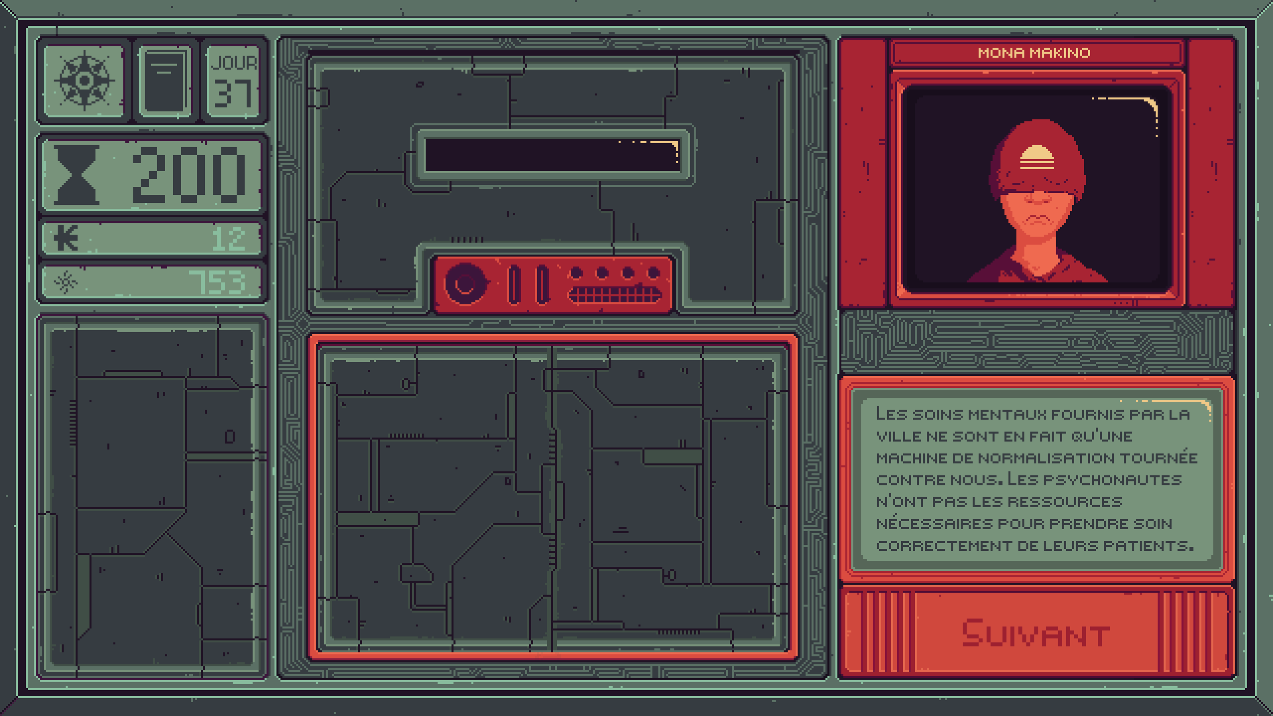 Une fois ce triste décor planté, venons-en à notre action. Mind Scanners propose d'incarner un psychonaute, en prodiguant des soins psychologiques à tous ceux qui en font la demande, ou presque. C'est en vérité par le biais de signalements que notre liste de patients se remplit chaque matin et de là vient tout un panel de personnes aux manquements très variés. À ce sujet, Malte Burup a fait le choix de remplacer les pathologies classiques et reconnues (schizophrénie, dépression, bipolarité et autres) contre des pastiches rigolos, un peu comme un Theme Hospital politique. On a ainsi une Sectionnite pour les coiffeurs qui ne peuvent s'empêcher de couper des choses ou du Règlementolisme pour une personne sans aucun libre-arbitre qui suit toutes recommandations officielles à la lettre.