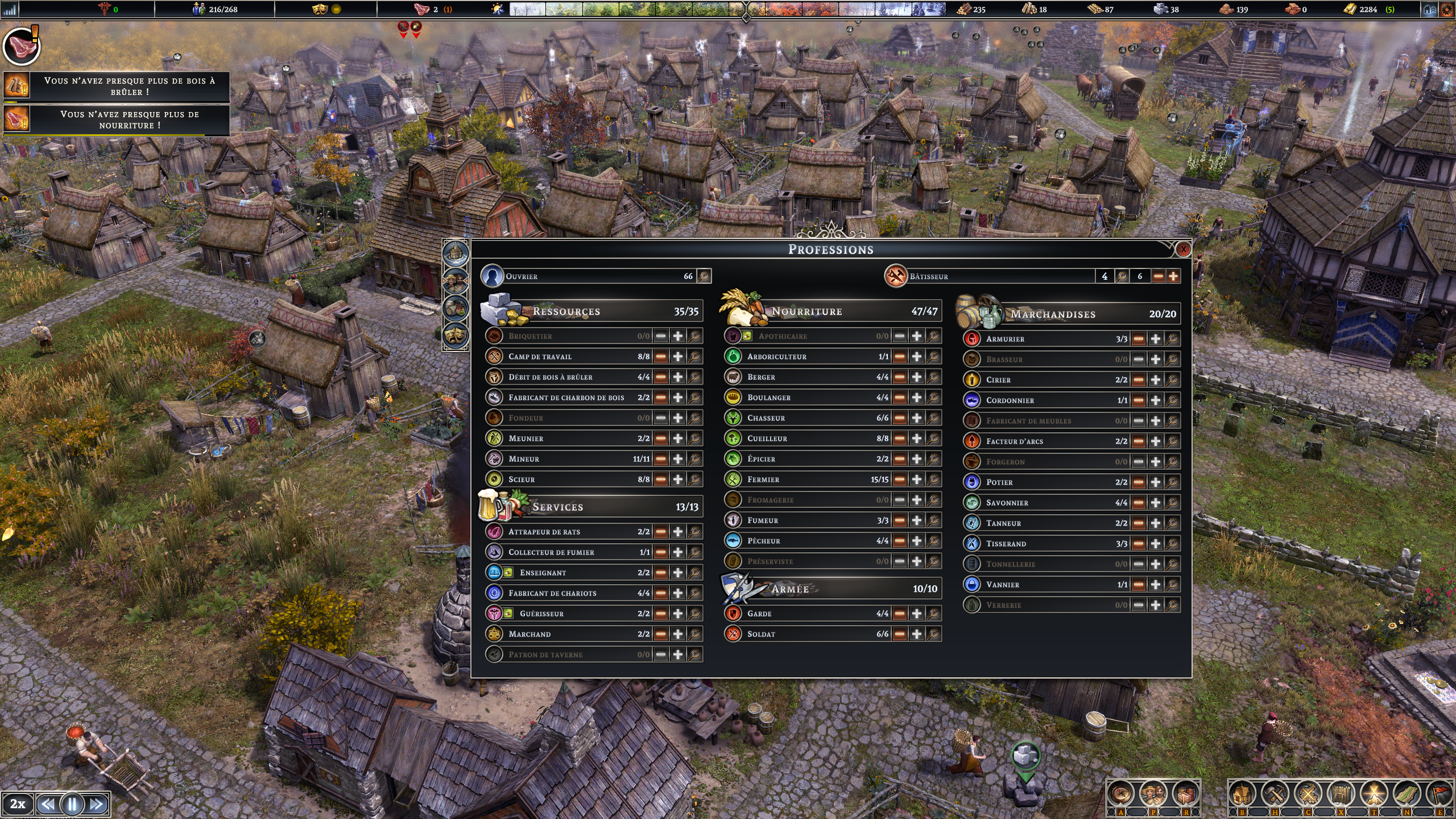 Le jeu n'est cependant pas totalement dénué d'outils, comme ici la gestion des métiers