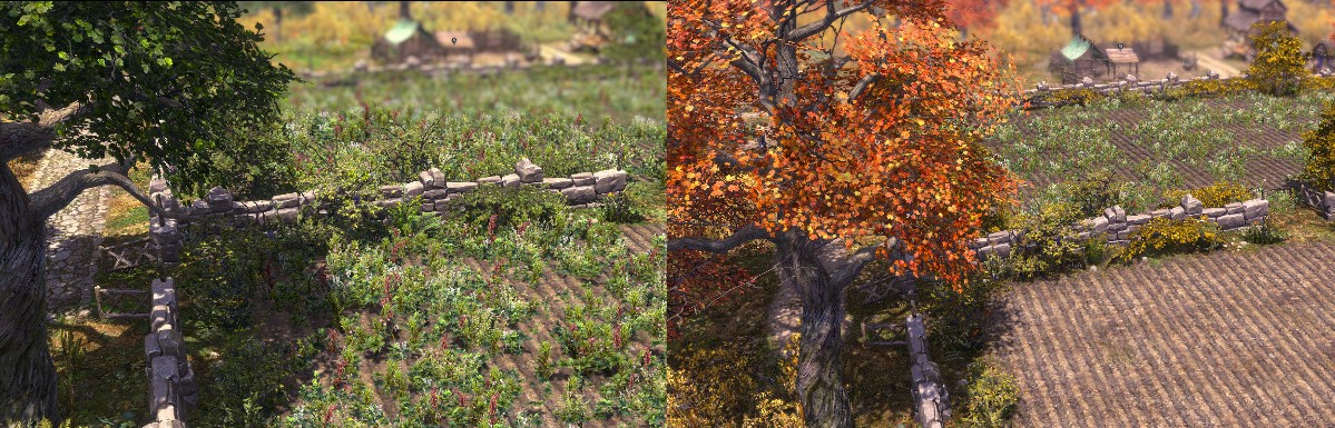 À ce sujet, le monde est plus vaste que dans un Banished, et les plaines sont davantage fournies en ressources brutes. Cela tend à donner l'impression d'un monde sauvage très dense, ce qui est particulièrement appréciable dans ce genre de simulation où parfois, dans d'autres propositions vidéoludiques, les terres sont anormalement maigres. Dans cette campagne très poétique, notre colonie s'assimile assez bien au paysage, grâce à une architecture plutôt réaliste.