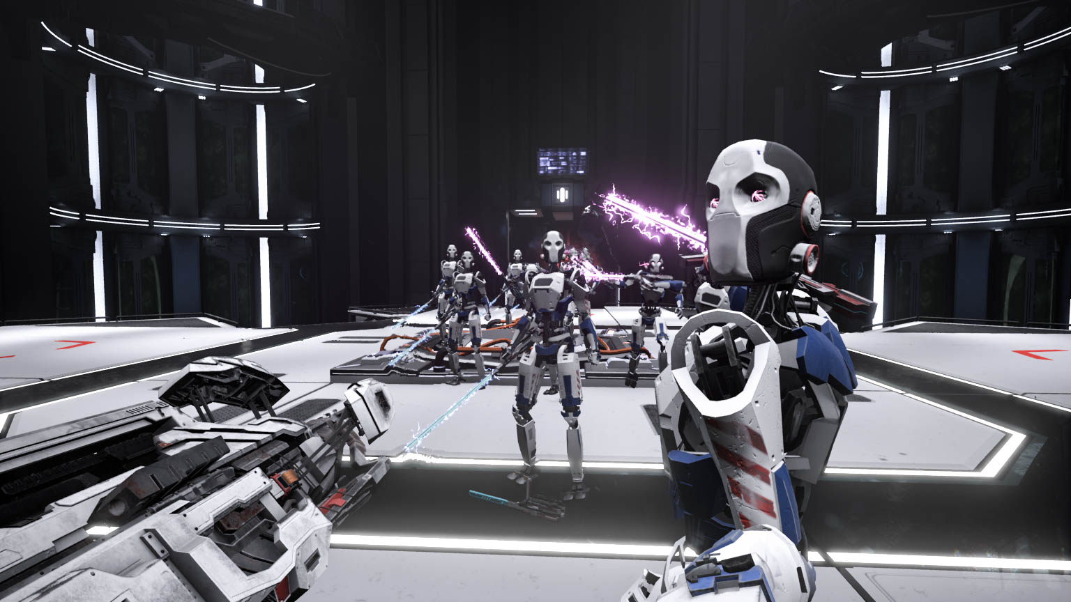 Malgré une certaine épuration des niveaux inhérente à beaucoup d’univers sci-fi, le jeu est convaincant. Les effets visuels sont présents pour augmenter la sensation de nervosité. Chaque fois que vous serez touché, votre vue se brouillera durant un court instant. Se déplacer de côté ou tourner penchera votre personnage. Effectuer un dash avant donnera un rapide effet de tunnel. Dans Protocore, tout est fait visuellement pour vous immerger.