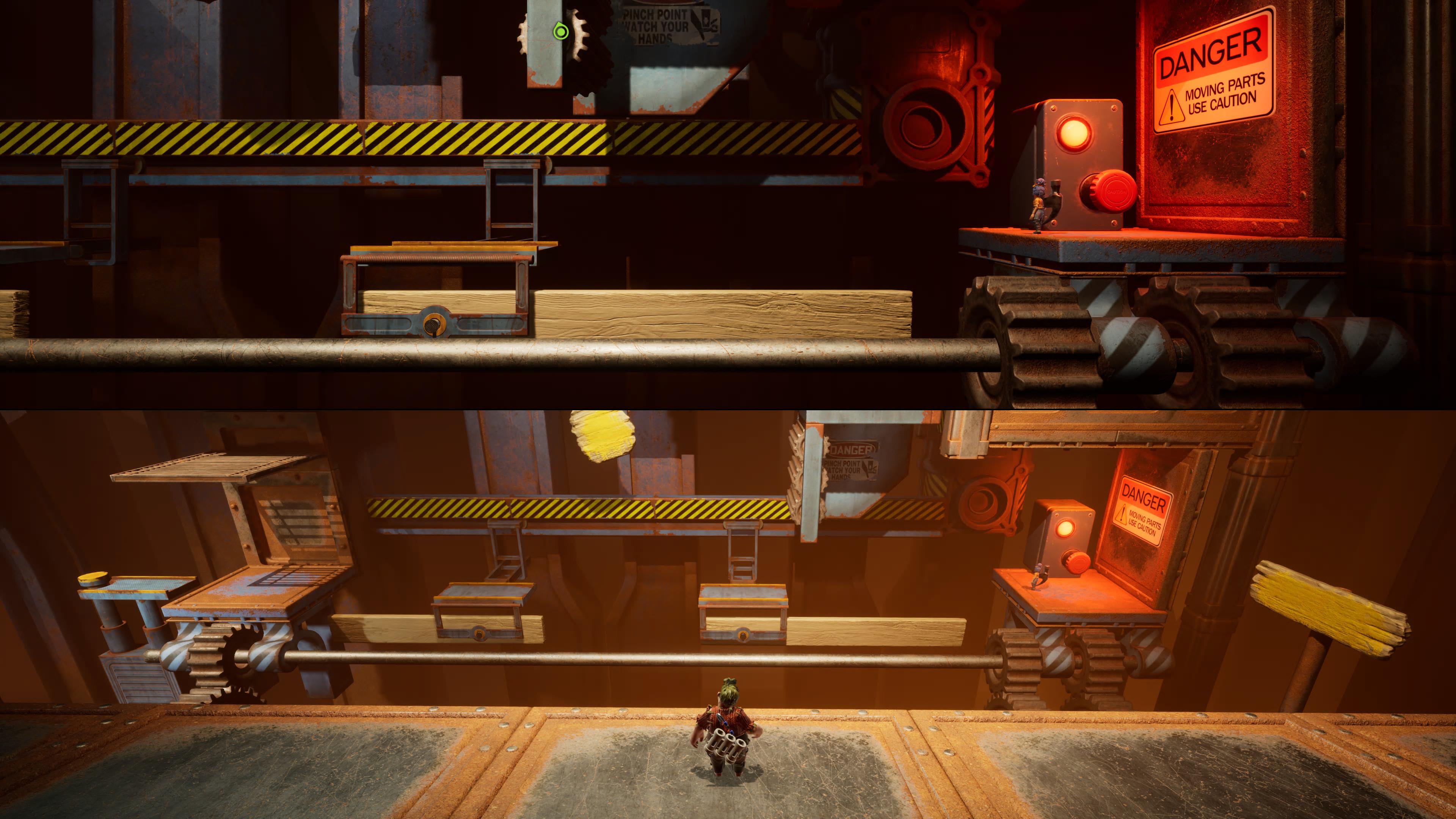 Ceux-ci se voient offrir, à chaque petit monde, de nouveaux outils pour les aider. C’est un bon moyen pour repousser la lassitude, les joueurs redécouvrant leurs capacités continuellement. Un marteau, une arme, un bouclier, puis finalement un jetpack. C’est toujours un petit plaisir d’avoir à découvrir une nouvelle façon de se mouvoir. Les outils sont différents pour Cody et Mary, et comblent ainsi l’expérience coopérative. C’est une méthode efficace et classique pour rendre codépendants les joueurs.