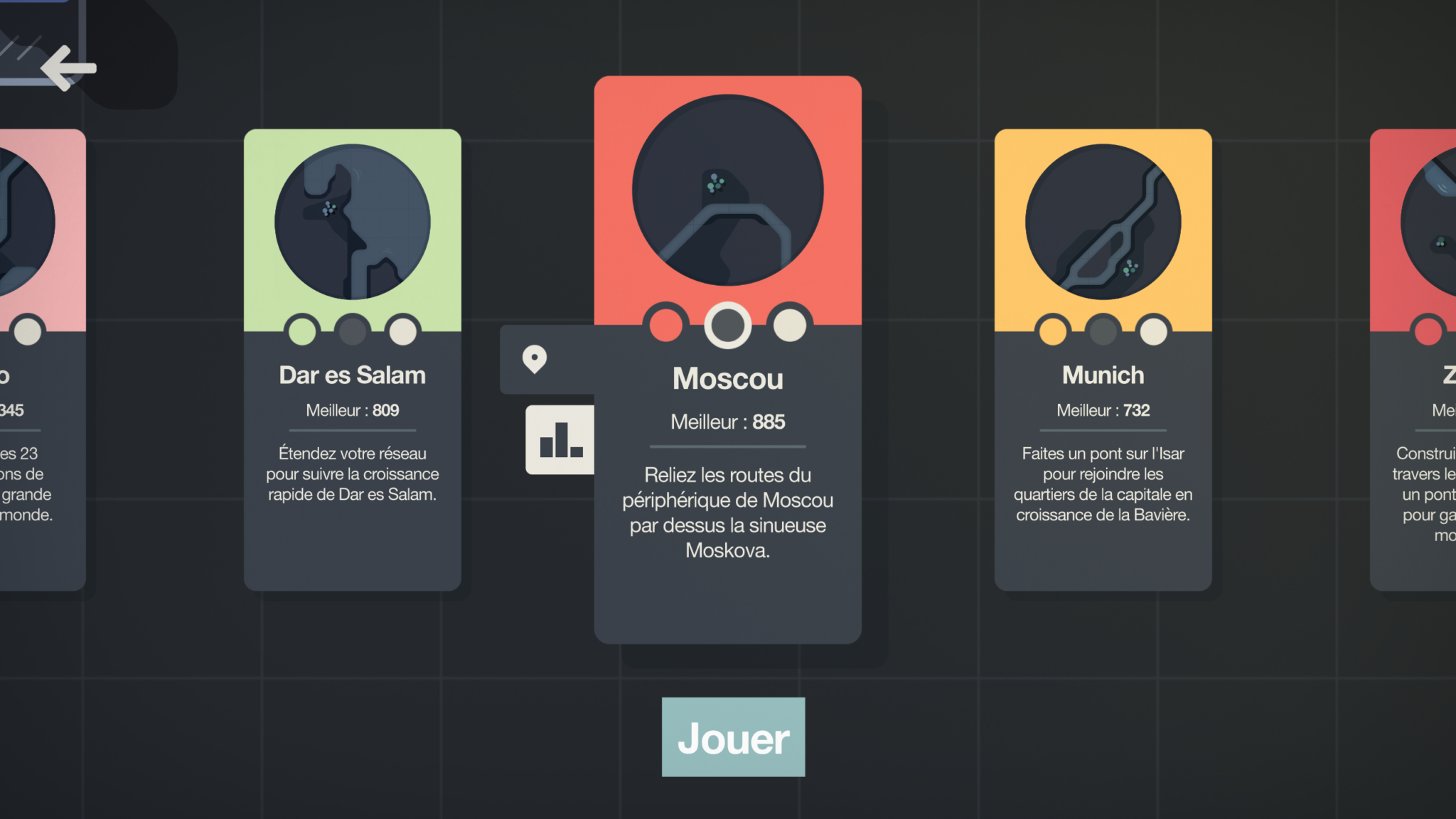 Différentes villes possibles dans Mini Motorways
