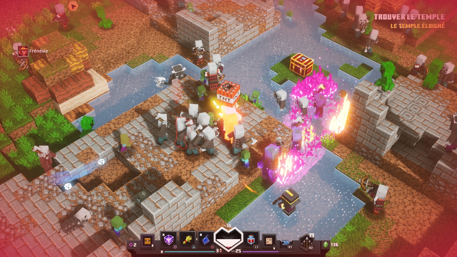 L’avantage d’avoir une jouabilité vraiment simple, est que presque n’importe qui peut jouer. Dans Minecraft Dungeons, à la manette, vous vous déplacez avec un joystick, attaquez au corps-à-corps ou à distance avec deux boutons, utilisez des artefacts affectés sur trois boutons, utilisez une potion d’un seul et finalement esquivez avec un dernier ou le second joystick.