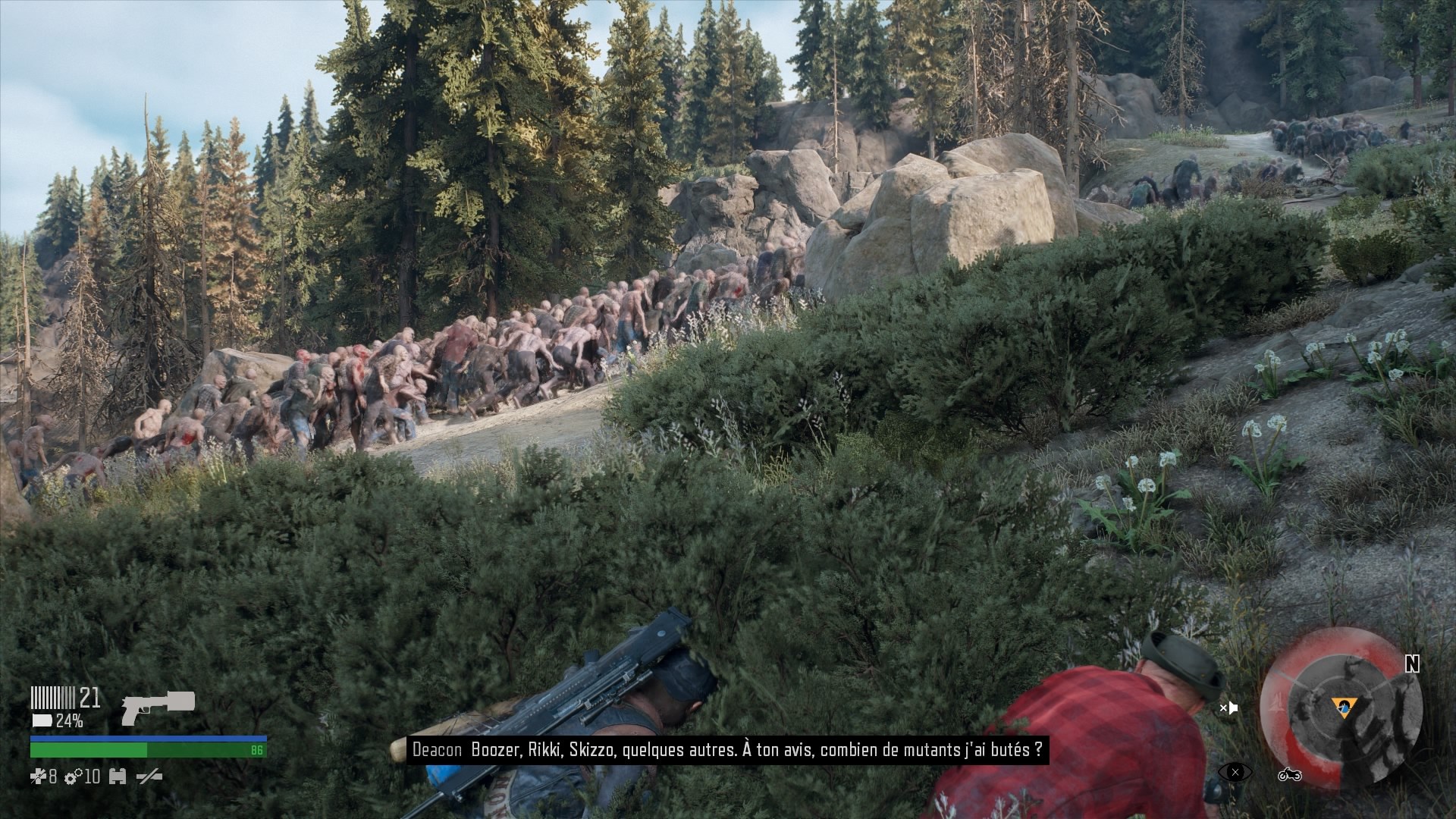 Vous allez ainsi devoir aider les camps de la région, en les protégeant des autres hommes ou des mutants. Mais votre propre histoire va progresser également, vous apprendrez rapidement qu’un homme, celui qui a pris Sarah dans son hélicoptère, a survécu. C’est ainsi que malgré les signes, Deacon regagne espoir et est prêt à tous les dangers pour le moindre indice de la survie de sa femme.