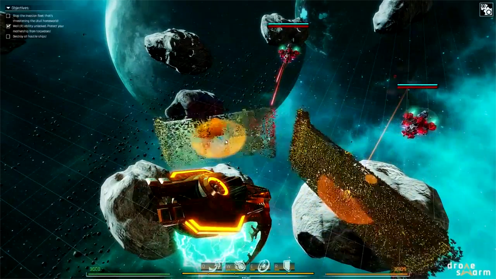 Au lieu de contrôler l’Argo, le vaisseau mère, vous prenez possession de la nuée de drones. De quelques clics, il vous est possible d’envoyer plusieurs groupes de ces chasseurs sentients pour créer une ligne de défense qui servira de bouclier aux lasers et projectiles ennemis. De la même manière il vous sera possible d’envoyer un grand groupe, ou plusieurs petits, attaquer en tentant de percer la coque du vaisseau, envoyer une vague d’énergie, etc.